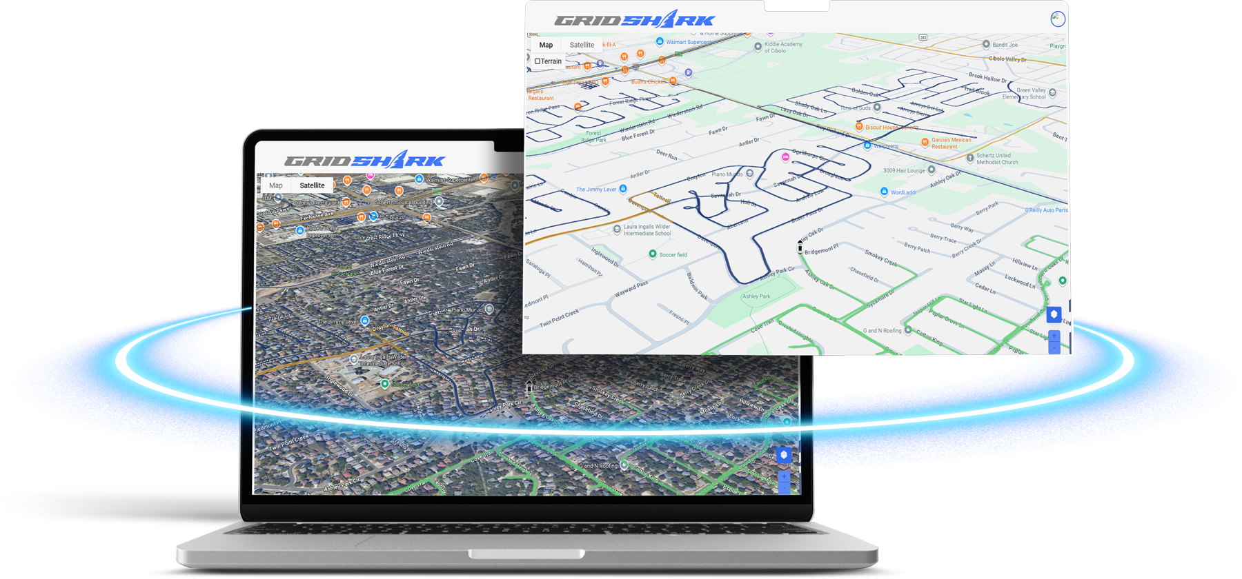 GridShark is built on a powerful integration with Google Maps, delivering a familiar, responsive, and highly detailed mapping experience. Users can seamlessly switch between map and satellite views while maintaining full visibility of live fleet movement and coverage history. This foundation allows operators to understand terrain, access points, and coverage at a deeper level—without sacrificing speed or usability in the field.